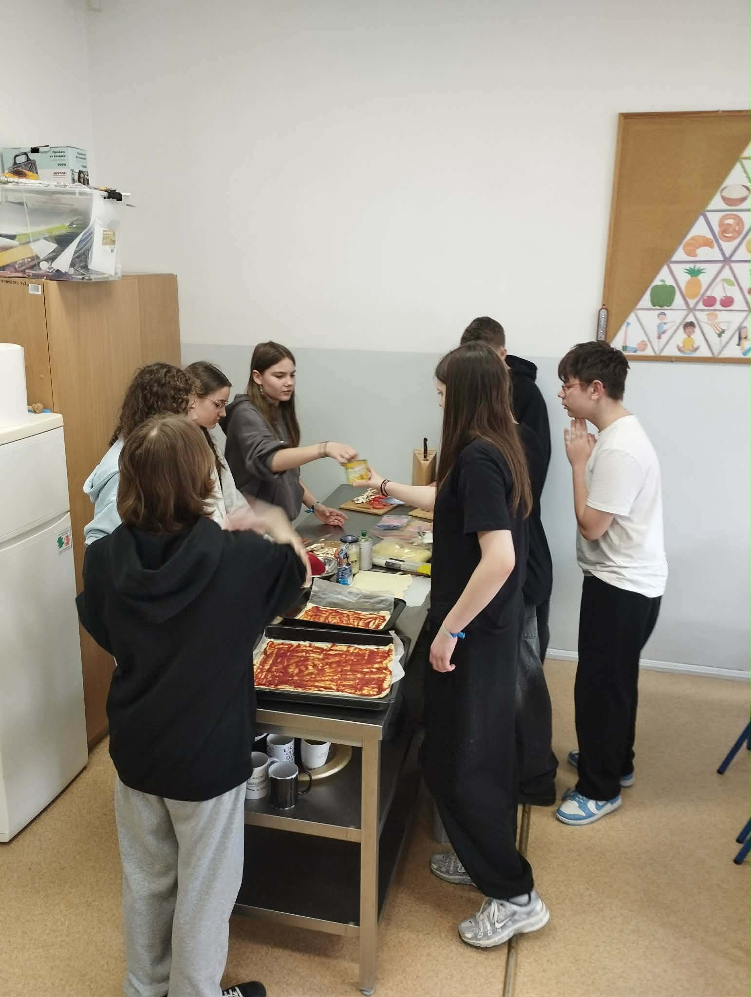 Kolejne zajęcia poświęciliśmy współpracy – „W relacji razem łatwiej”! Tym razem było bardzo praktycznie – sprawdziliśmy, jak wygląda współpraca w działaniu. Zadaniem uczniów było wspólne przygotowanie pizzy