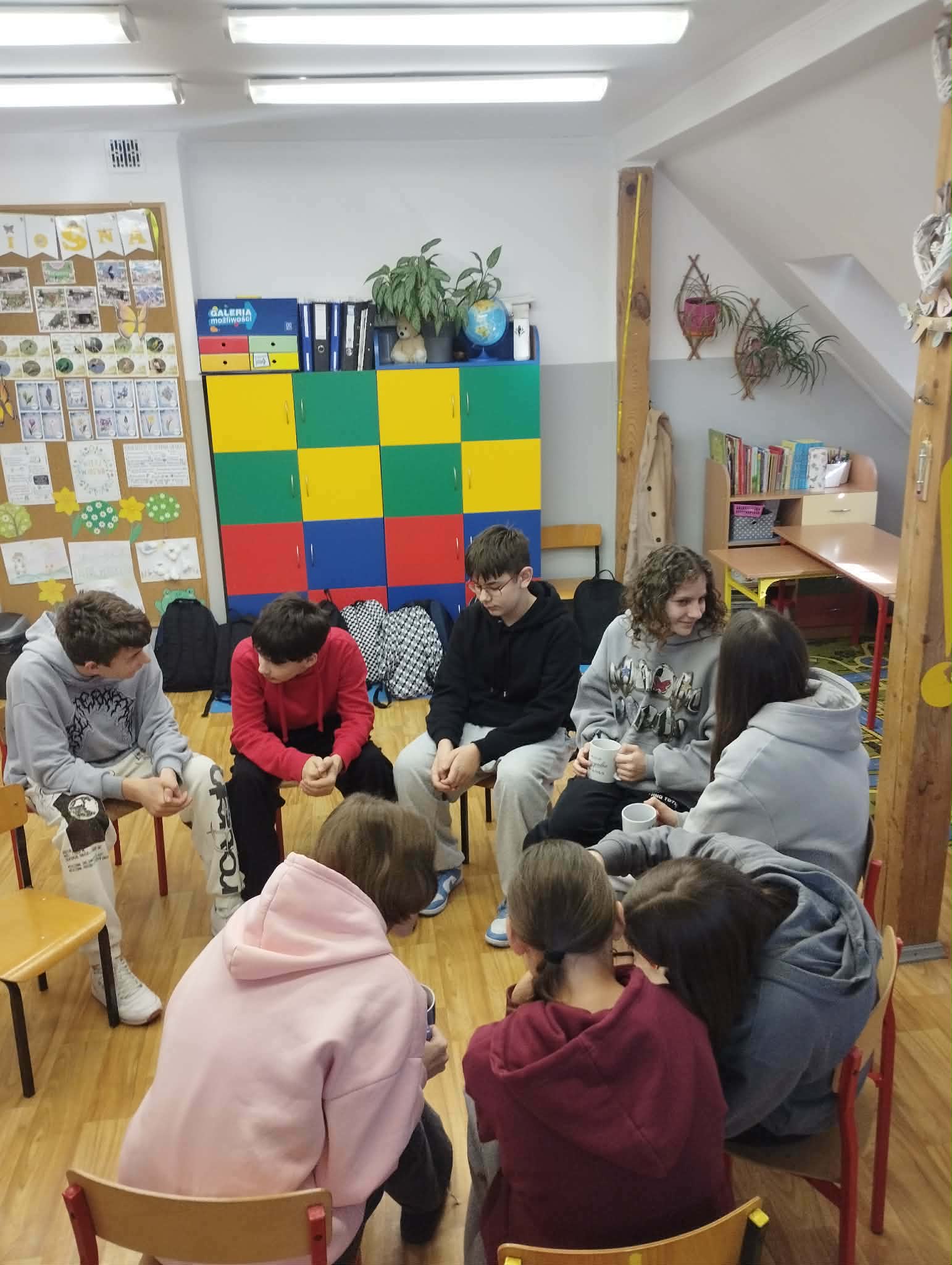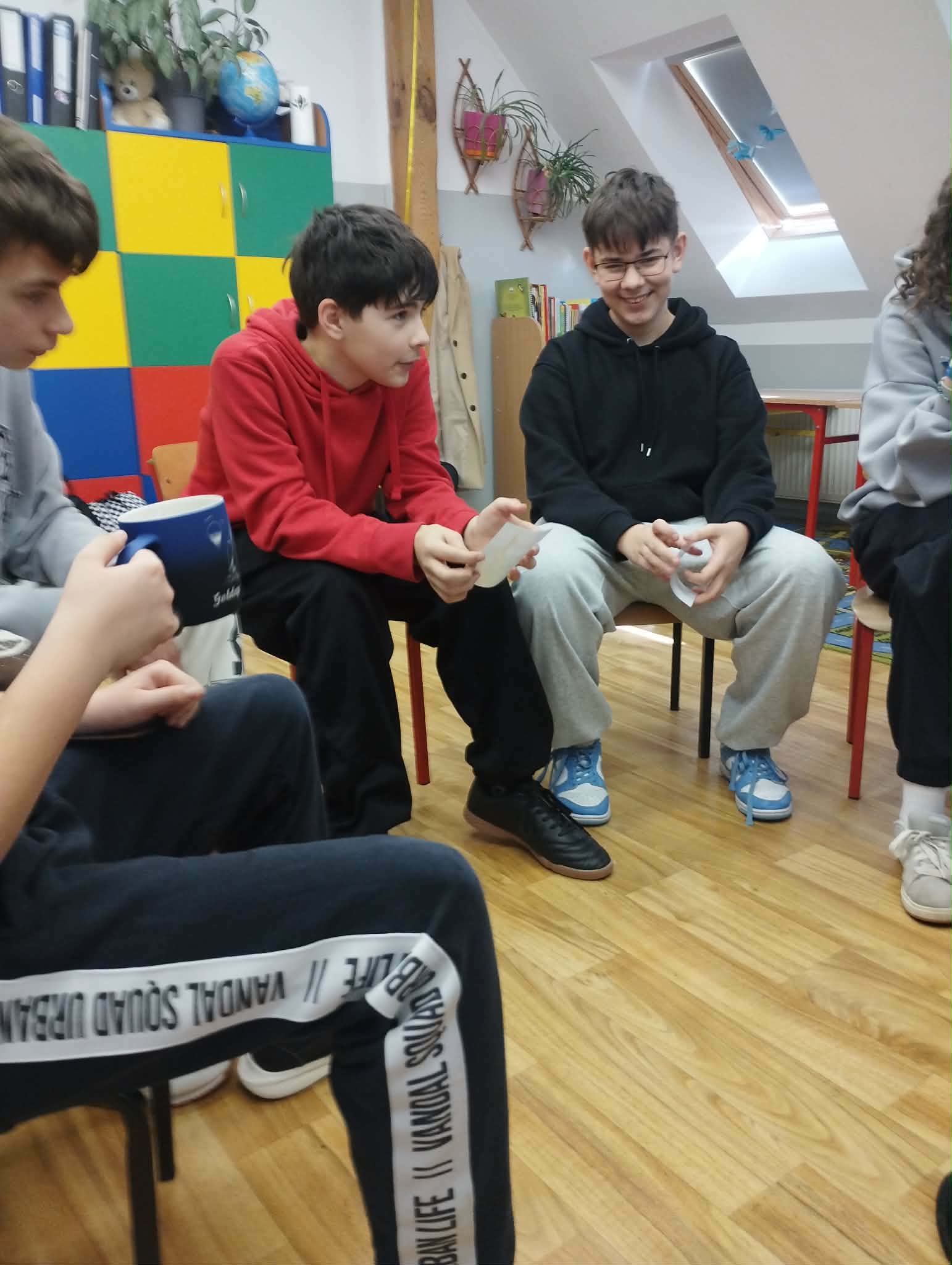 Tym razem wtorkowe zajęcia rozpoczęliśmy od pytania: czy słowa mogą ranić, a czy potrafią też przynosić ulgę? Uczniowie wzięli udział w ćwiczeniach polegających na przekazywaniu życzliwych komunikatów („Miłe słowo – podaj dalej”, „Komplement w ruchu”) oraz w „Gorącym krześle”, gdzie kierowali do siebie wyłącznie pozytywne wypowiedzi. Rozmawialiśmy o tym, jak okazywać wsparcie, a na koniec stworzyliśmy plakat „Jak budować wspierającą klasę” ![]()