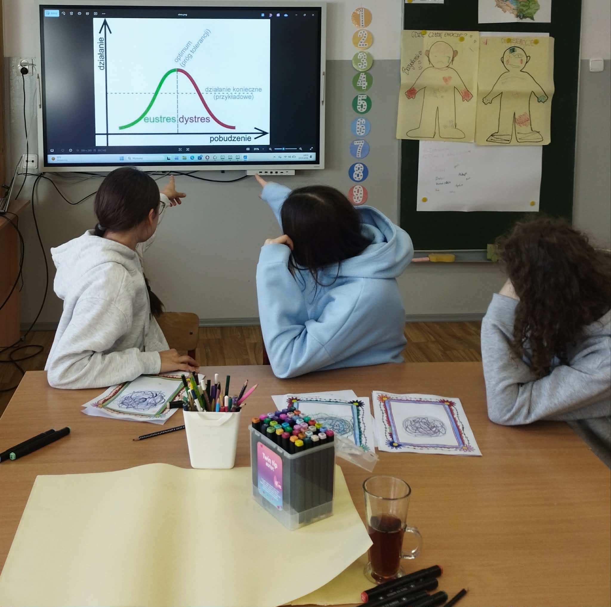 Podczas warsztatów uczniowie uczyli się, jak radzić sobie ze stresem i silnymi emocjami – tworzyli mapy stresu, ćwiczyli techniki oddechowe, uważność oraz przygotowywali własne plany antystresowe.