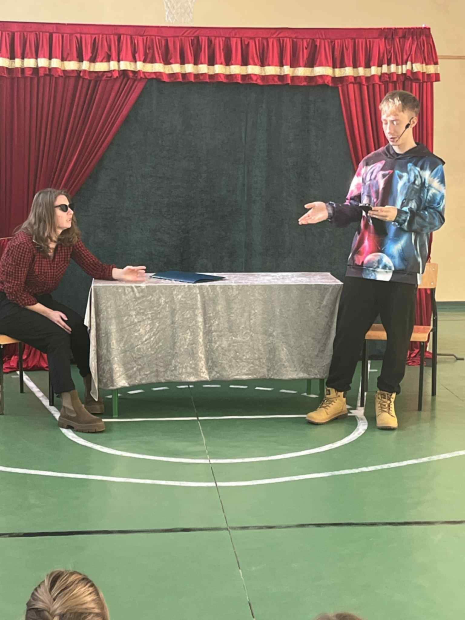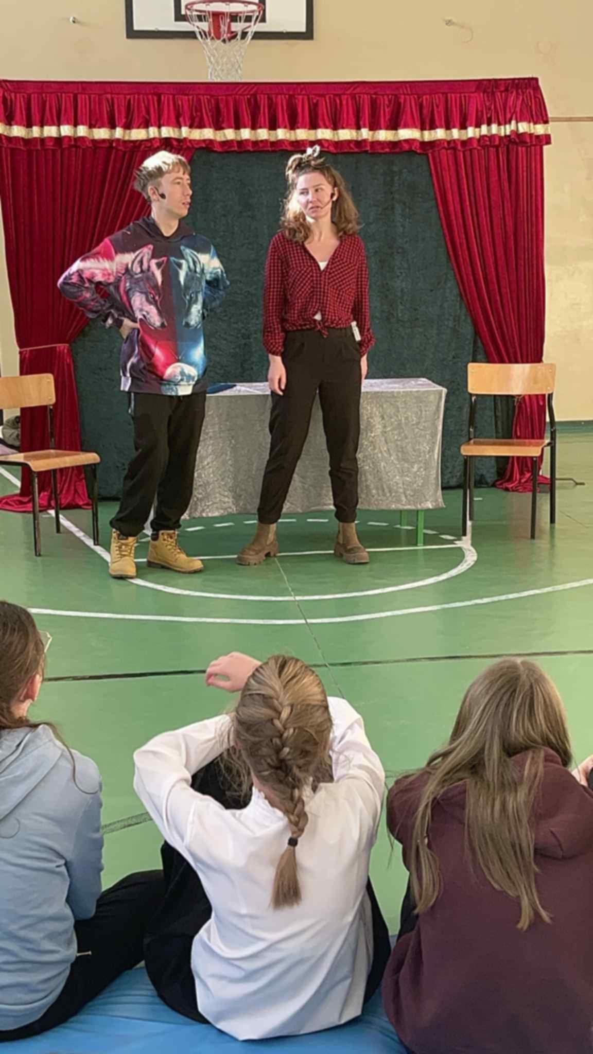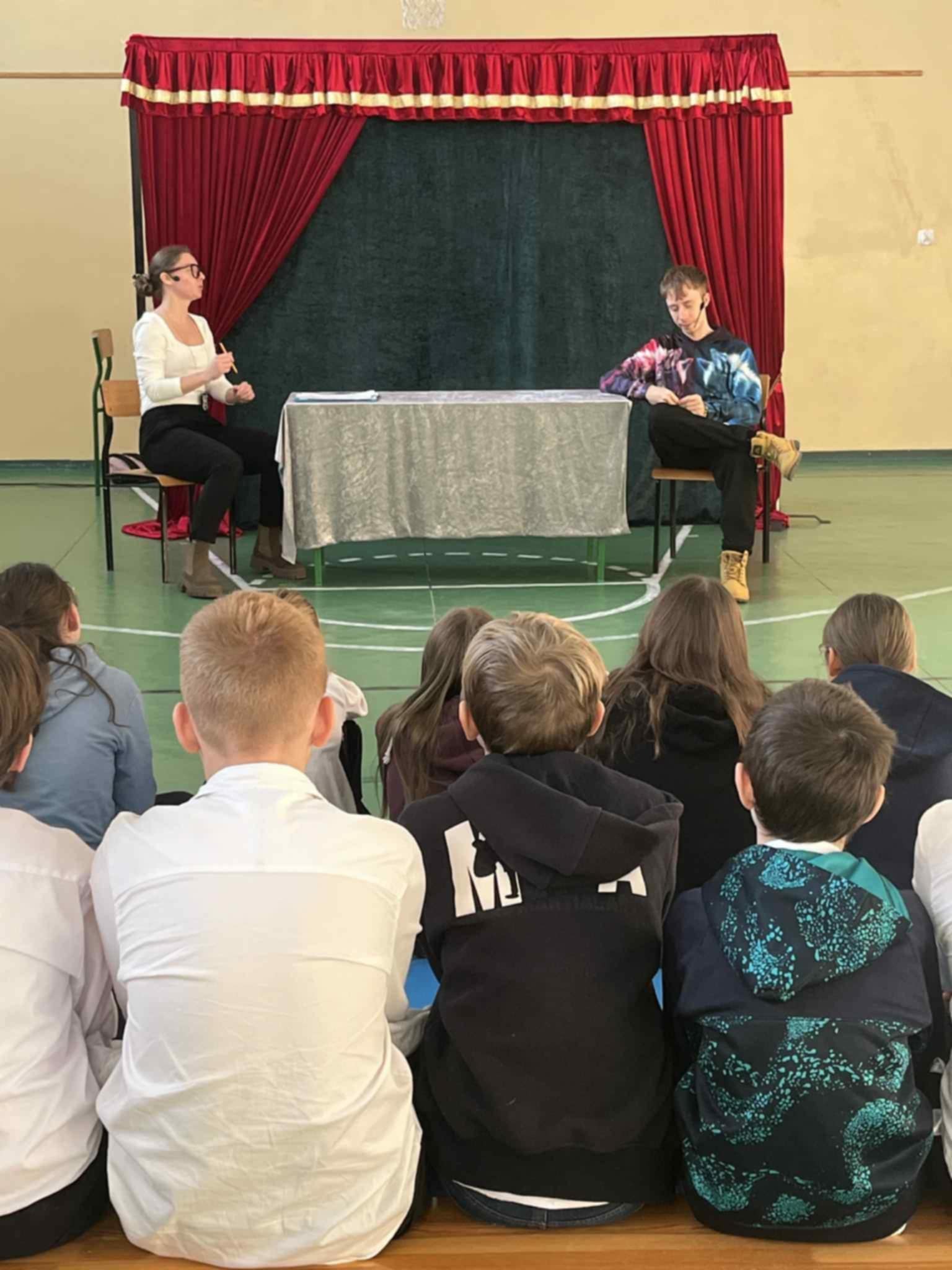 Druga część projektu była zorganizowana przy współpracy z aktorami teatru „Magiczna scena” z Krakowa. Młodsi uczniowie z zaciekawieniem obejrzeli spektakl profilaktyczny „Za wszelką cenę”, starsi uczniowie natomiast uczestniczyli w widowisku artystycznym z zakresu profilaktyki „Wachlarz wartości w szkole”.