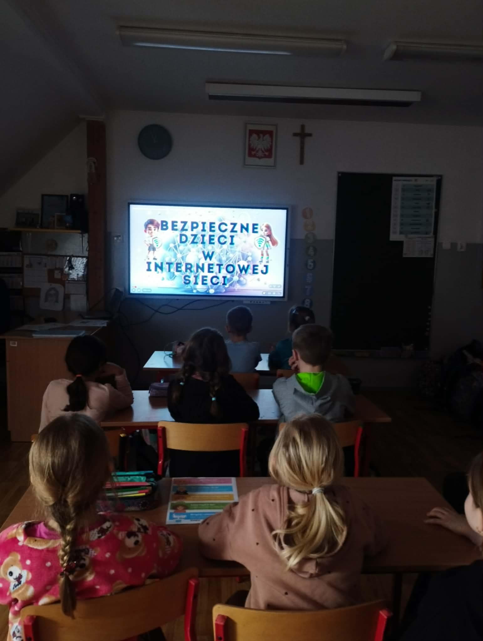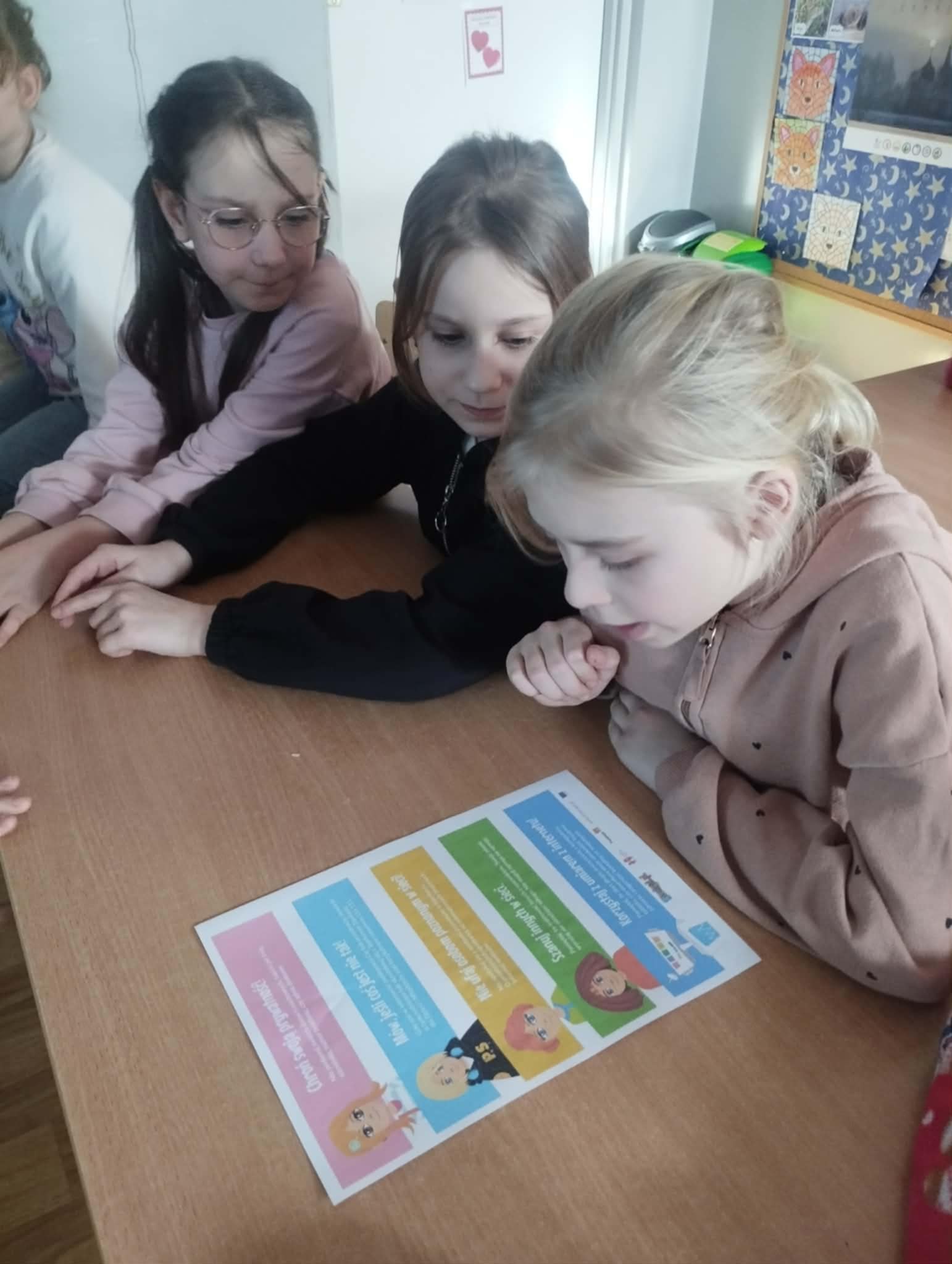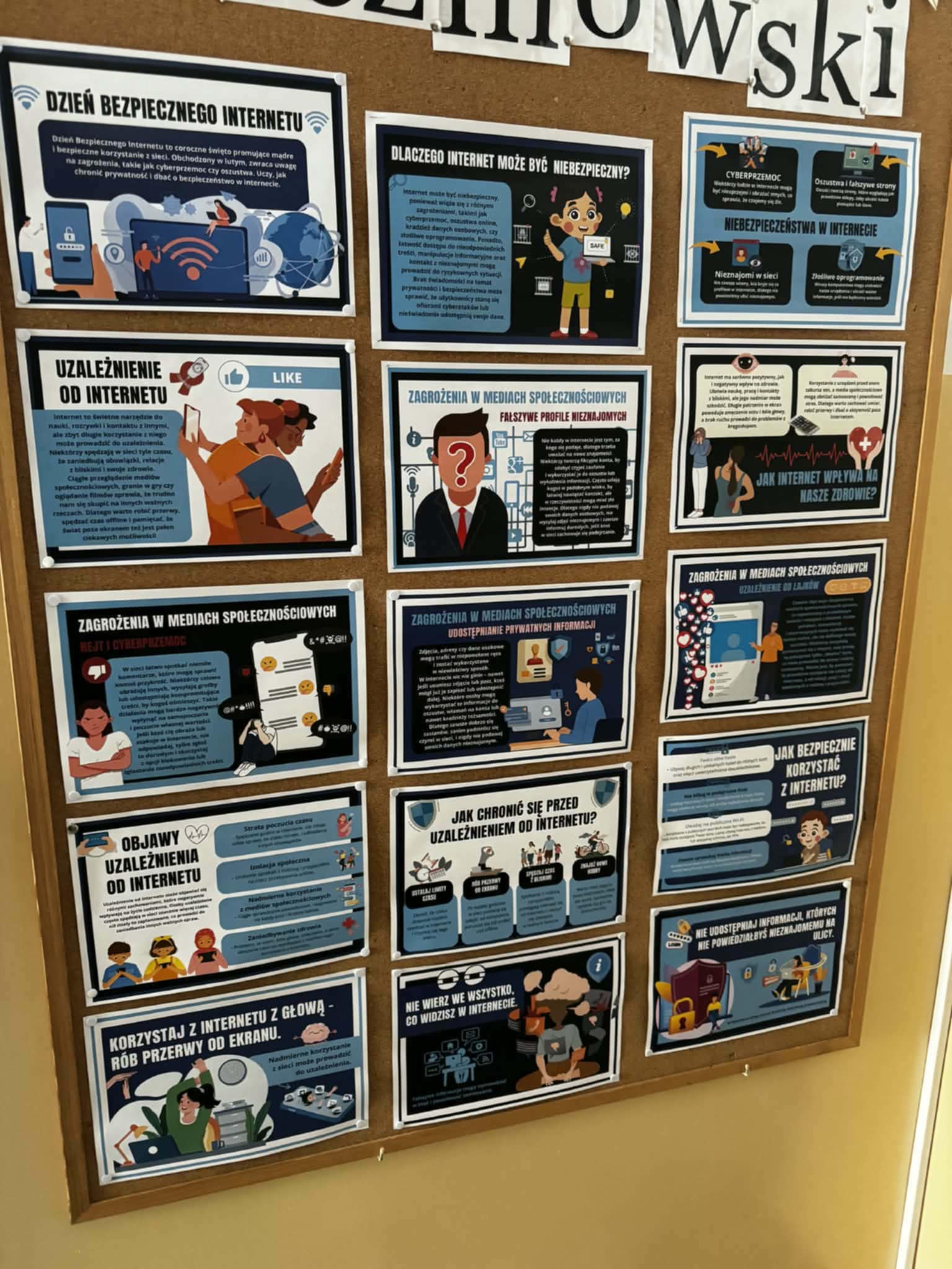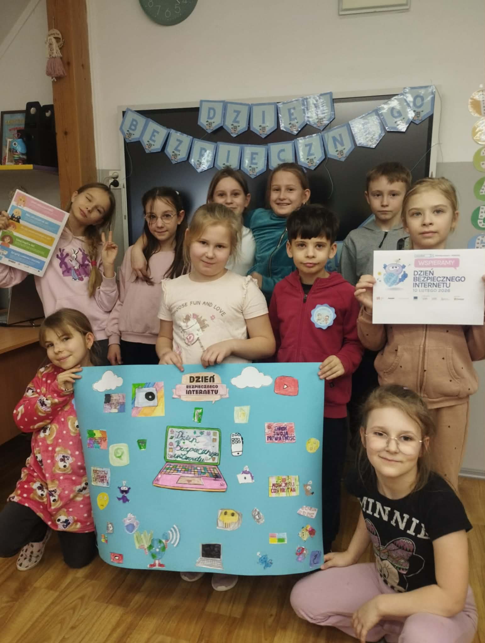 Uczniowie obejrzeli film edukacyjny „Bezpieczne dzieci w internetowej sieci”, rozwiązywali quizy i zagadki na tablicy multimedialnej oraz wspólnie przygotowali plakat z zasadami bezpiecznego korzystania z internetu- była to doskonała okazja do współpracy i nauki przez działanie. Natomiast Samorząd Uczniowski przygotował gazetkę szkolną poświęconą tej tematyce.