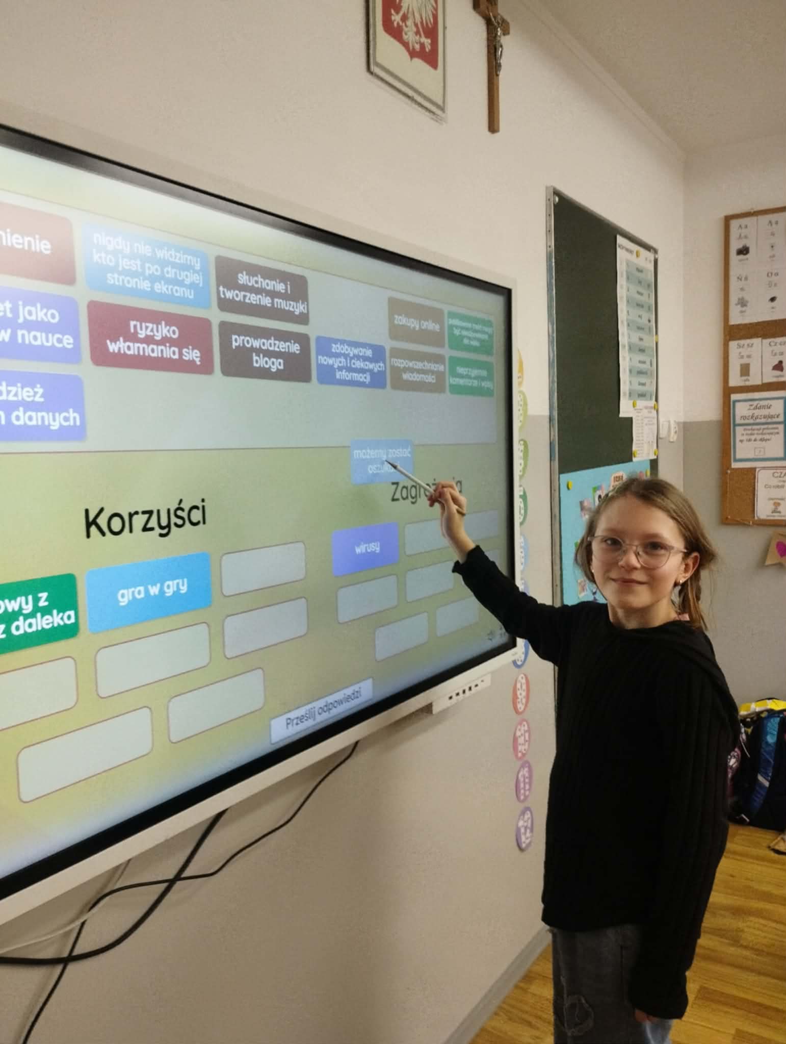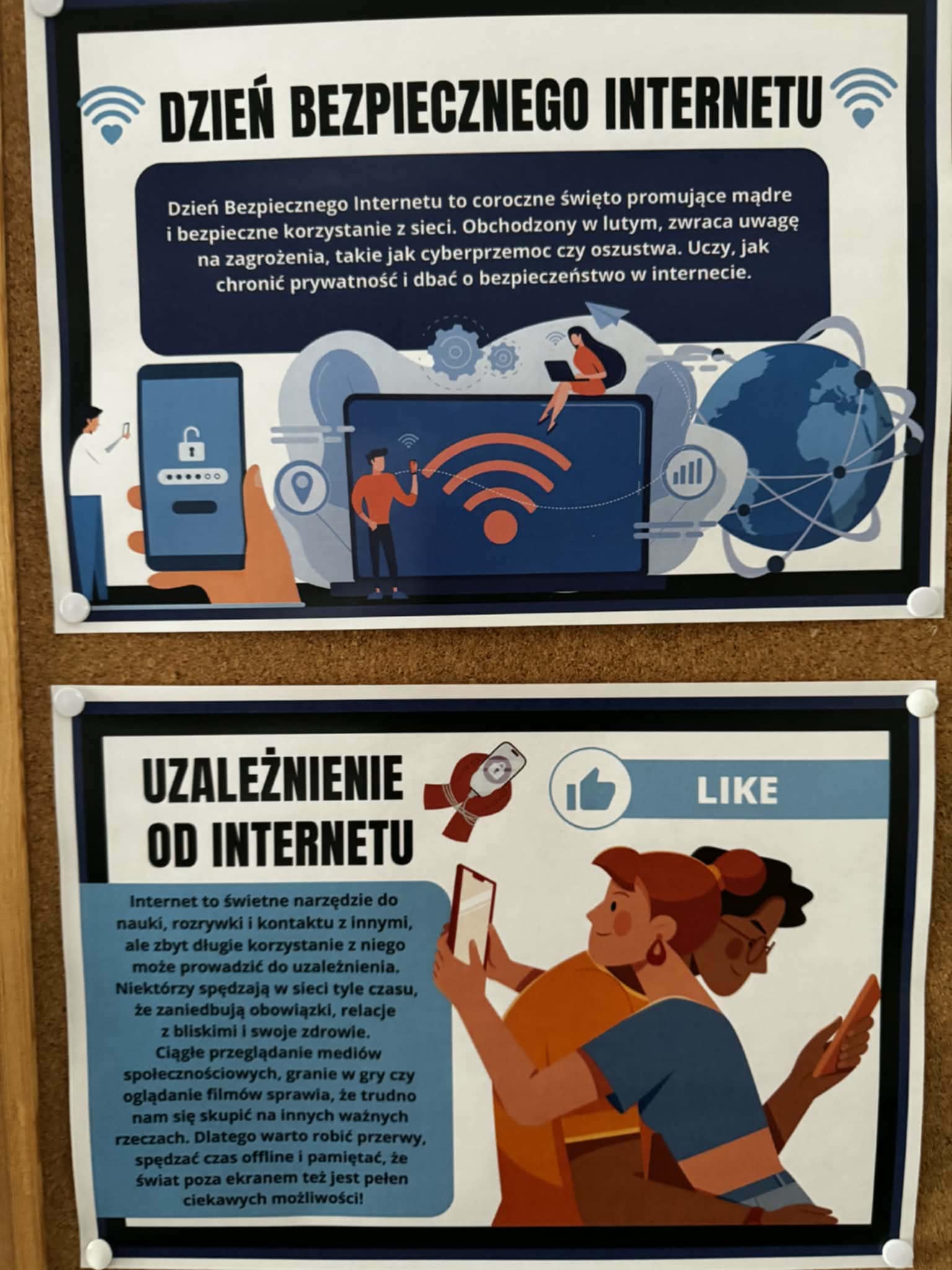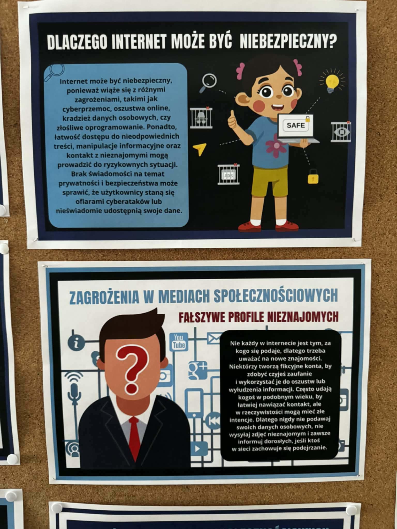 Uczniowie obejrzeli film edukacyjny „Bezpieczne dzieci w internetowej sieci”, rozwiązywali quizy i zagadki na tablicy multimedialnej oraz wspólnie przygotowali plakat z zasadami bezpiecznego korzystania z internetu- była to doskonała okazja do współpracy i nauki przez działanie. Natomiast Samorząd Uczniowski przygotował gazetkę szkolną poświęconą tej tematyce.
