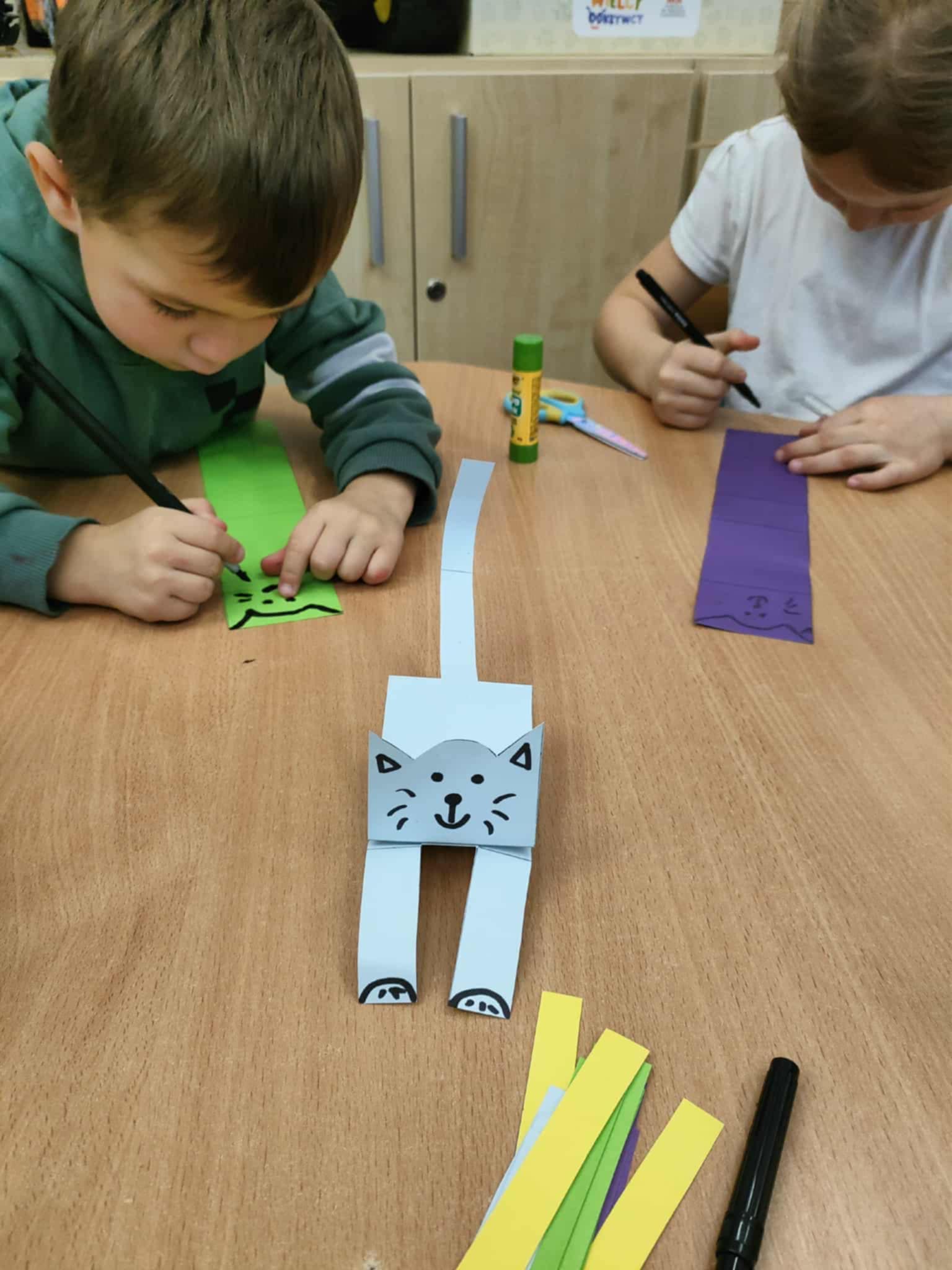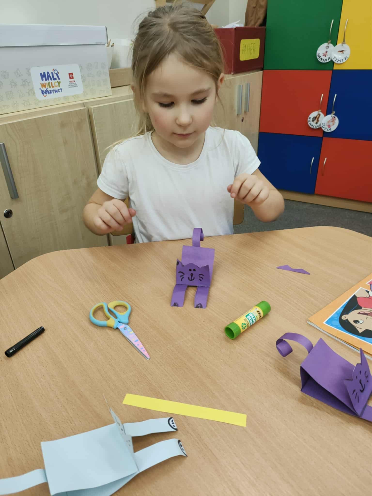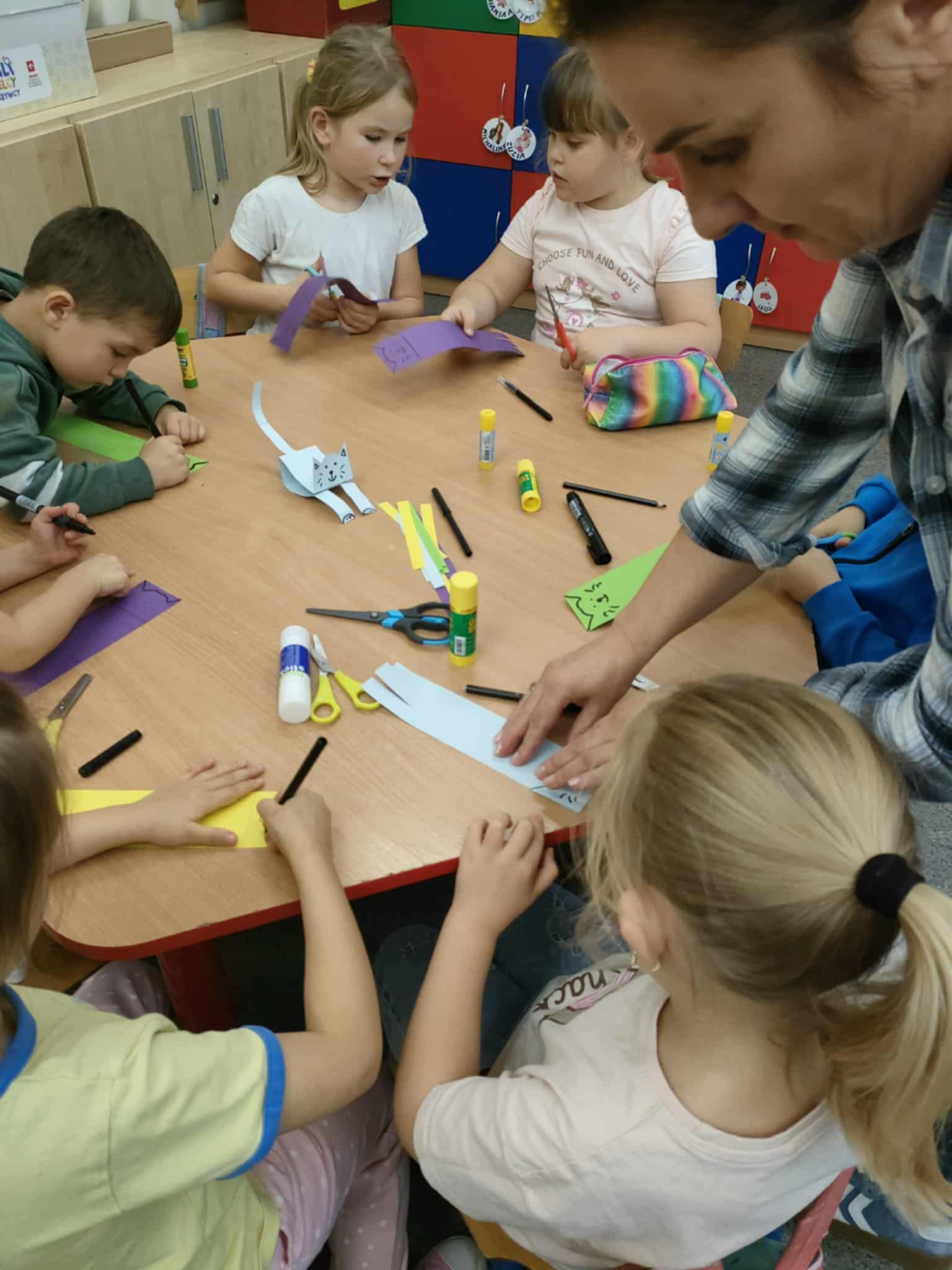 W ramach Narodowego Programu Rozwoju Czytelnictwa przedszkolaki wzięły udział w ciekawych zajęciach z Panią logopedą Dorotą Kibitlewską. Wysłuchały bajki, rozwiazywały zagadki słuchowe, naśladowały i nazywały zwierzęta oraz rozwiązywały zagadki słuchowe. Na zakończenie zajęć wykonywały pracę plastyczno-techniczną, kotka origami. Dziękujemy Pani Dorotce za ciekawe zajęcia.